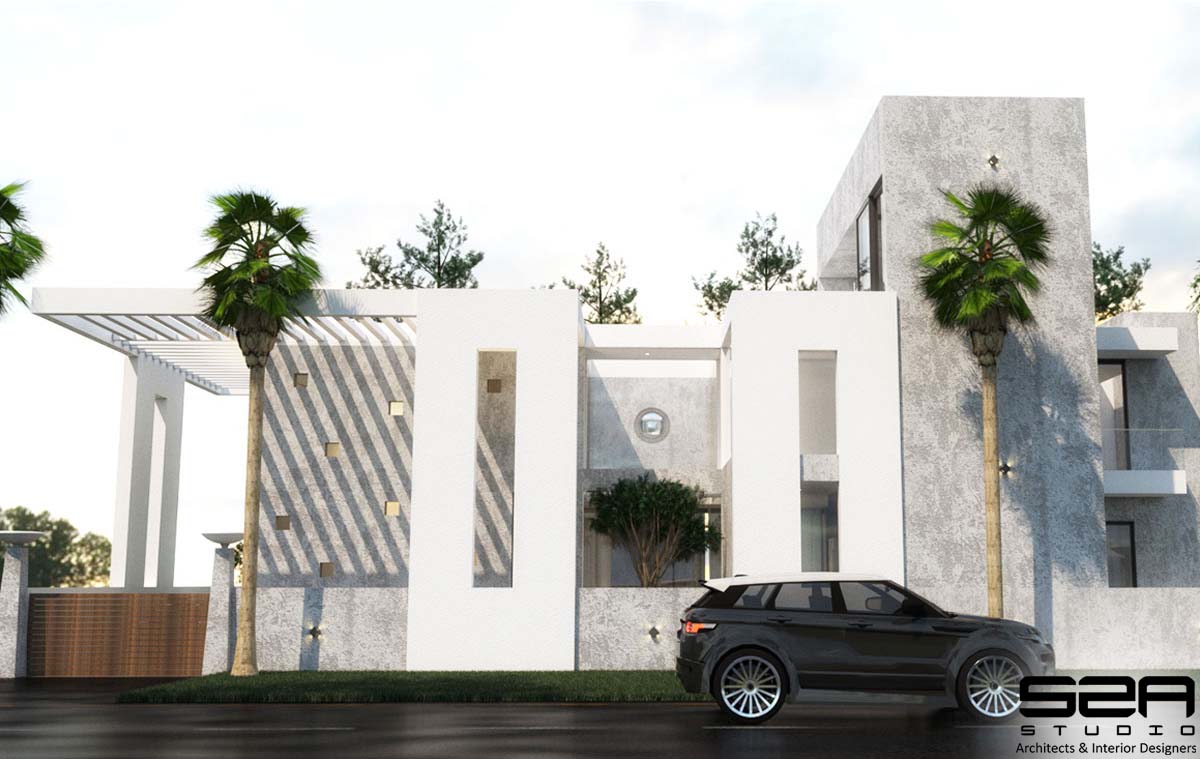 Having 4 bedrooms, kitchen, living, dining, gym and an open family lounge. The main requirement of the client was to have a simple house for simple living therefore the exterior and interiors have been designed keeping in mind the same.