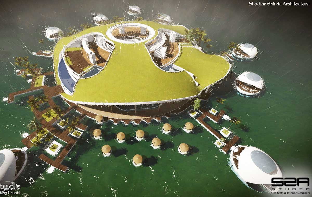 Solitude Floating Resort | S2A Studio | Architects Design Studio | Architecture, Interior Designer, Master Planning, Turnkey Interior Contract, Landscape Architecture, Product Design, Visualization | Shop 7, Chinar Apartments, 1707 B Shivajinagar, Near Agriculture College, Sakhar Sankul Road, Pune- 411005.